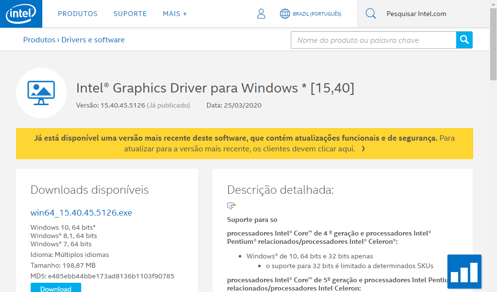 Para baixar e instalar qualquer drive é recomendável instalar o driver original fornecido pelo fabricante, caso esteja atualizando seu drive faça um Backup do drive atual antes de fazer atualização e por fim verifique se o drive que será instalado é realmente do drive compatível com a placa de vídeo integrada do seu computador para evitar erros e problemas que possam levar a uma possível formatação do seu computador, depois de tudo verificado siga os passos a seguir